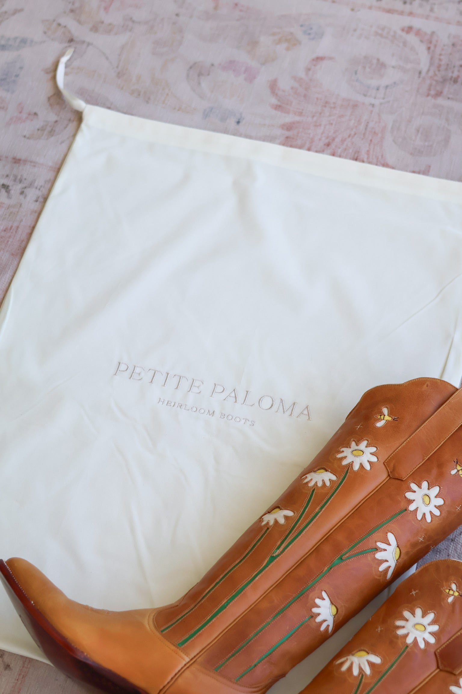 Our Petite Paloma dust bag is designed to keep your boots protected, whether you’re storing them at home or traveling. Soft, durable, and thoughtfully made, it helps preserve the beauty of your leather for years to come.